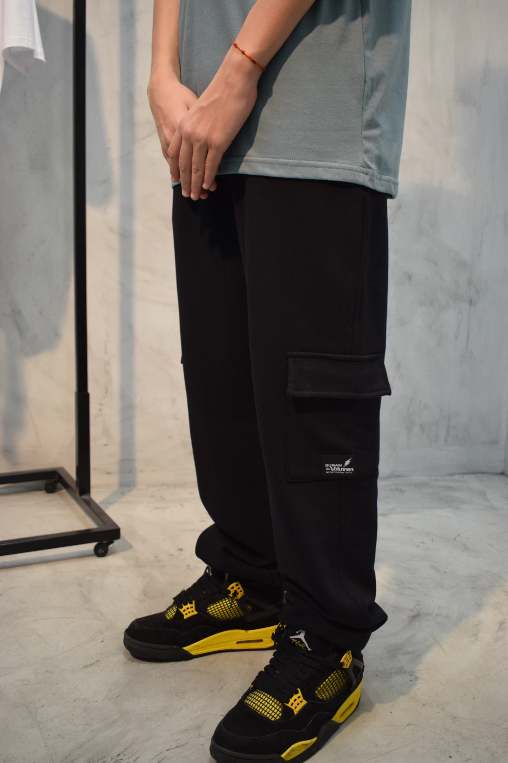 Babucha de algodón rústico cargo con puño de ribb y bolsillos en la misma tela
