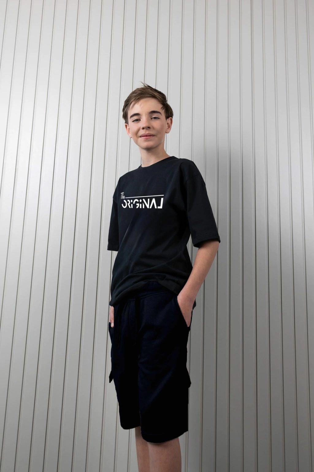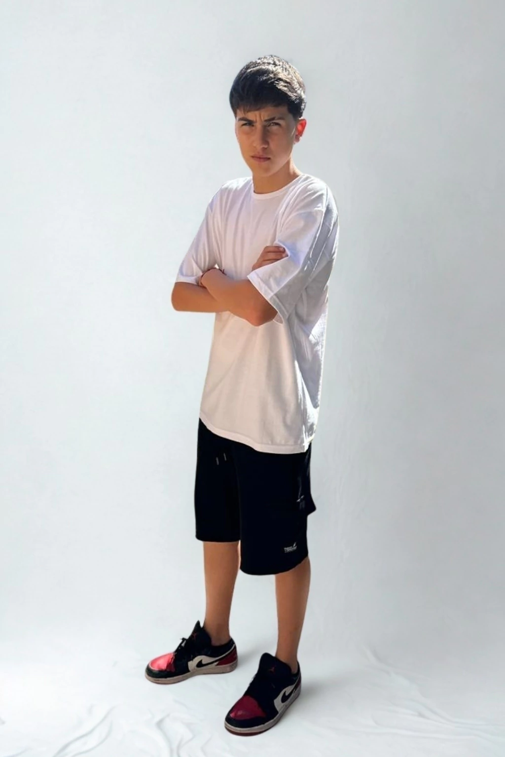 Bermuda de algodón rústico cargo tipo baggy con bolsillos