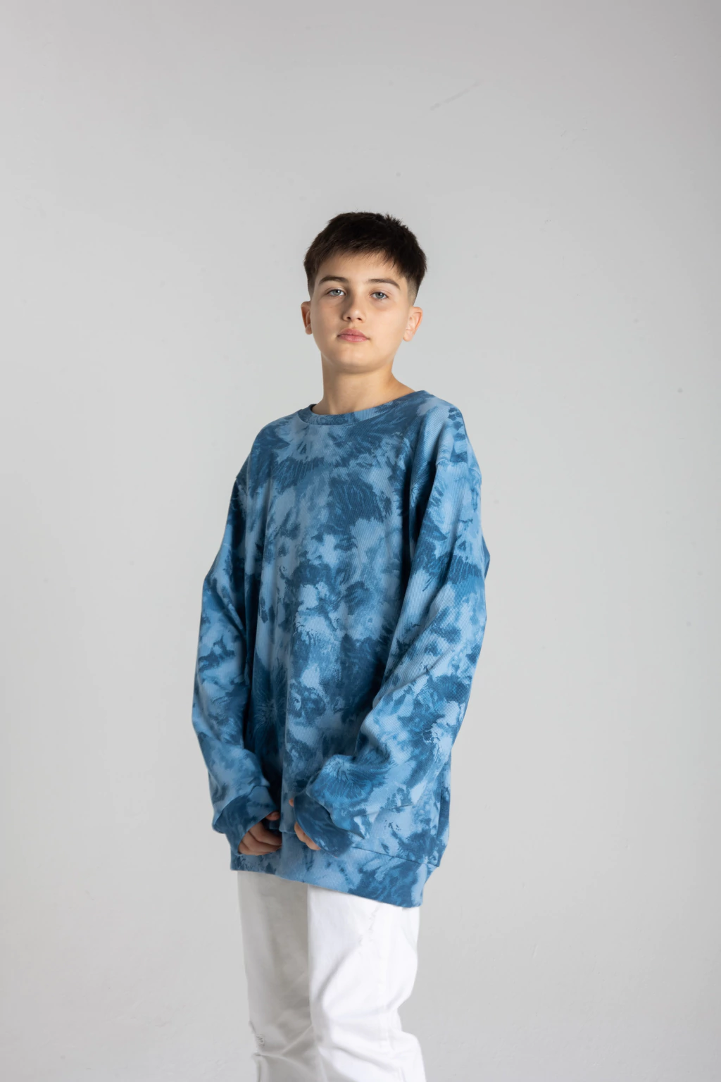Buzo cuello redondo de morley estampado tipo batik