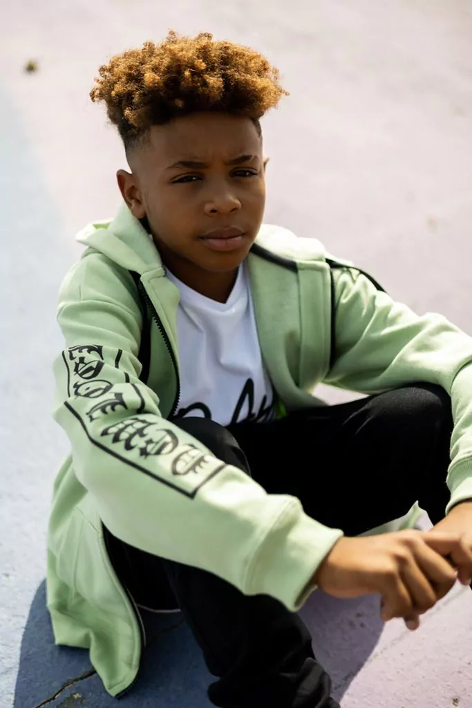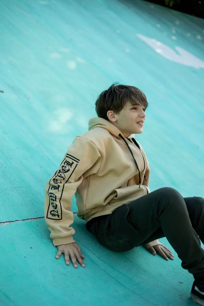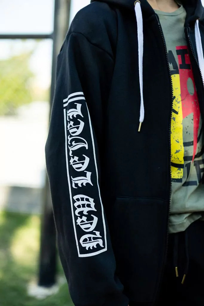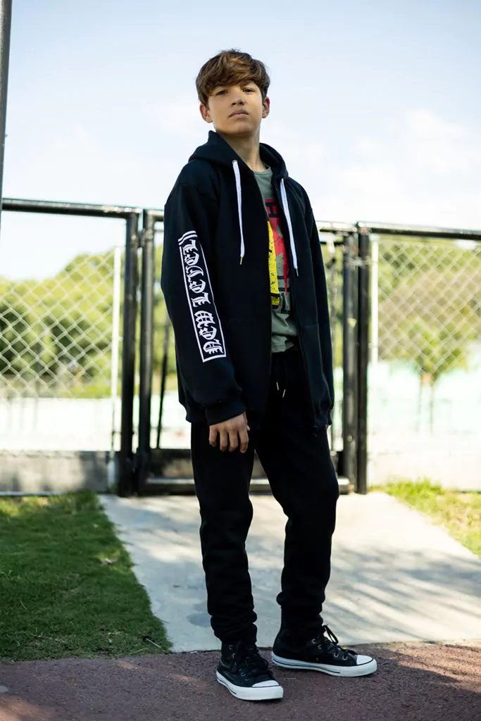 Campera algodón elastizado soft con estampa en la manga y en la capucha